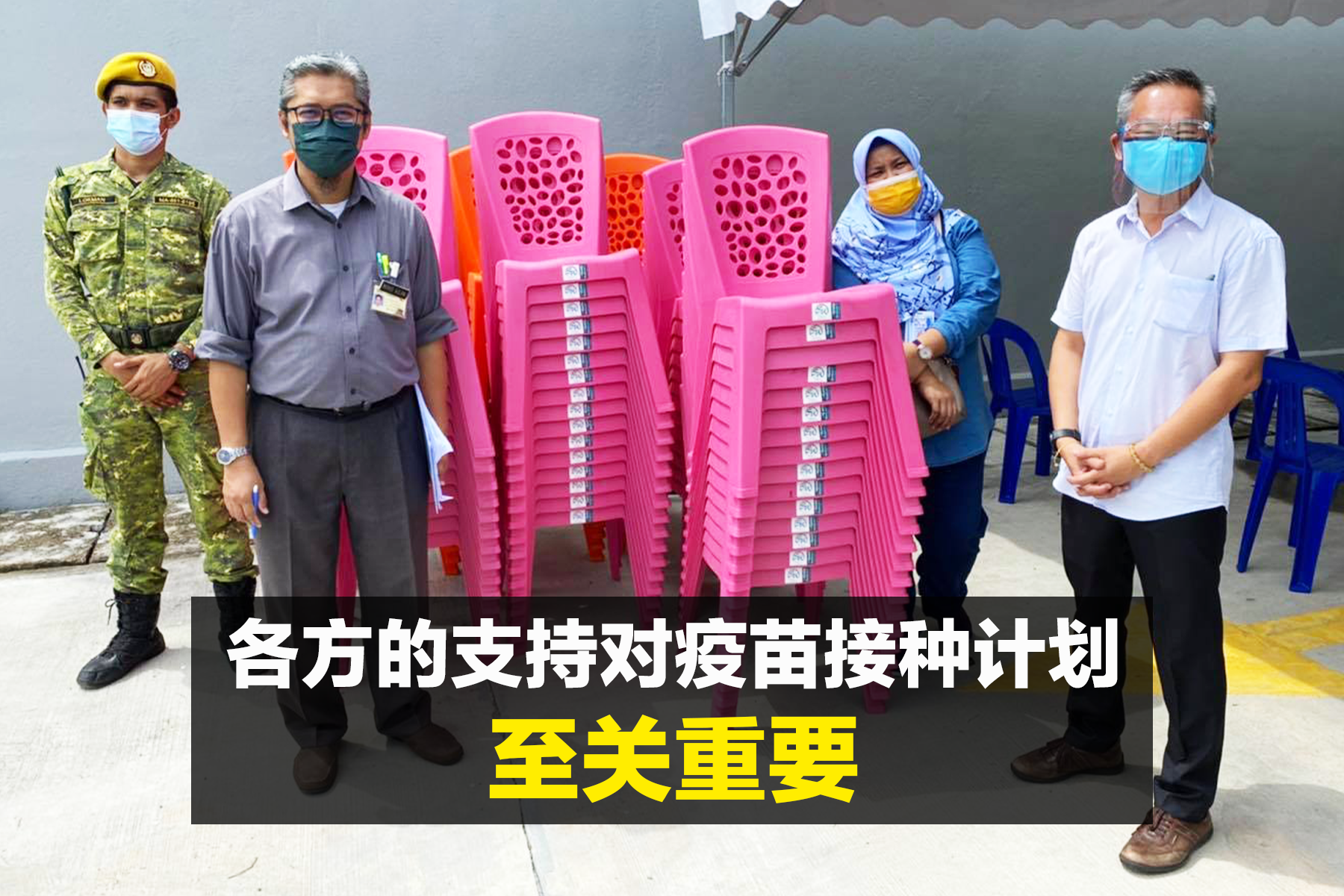 在了解该情况后,他的办事处亦准备额外100张椅子到该接种中心,让家属们能够坐下等待,不必长时间站着,而造成人潮拥挤的现象。