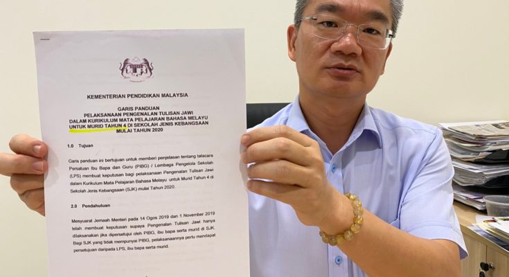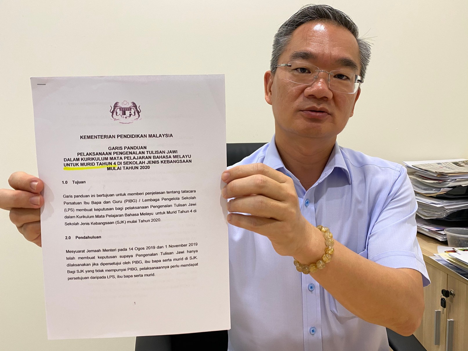 (马六甲13日讯)马六甲市区国会议员邱培栋揭露,马六甲中央县某华小家协主席指示校方派发爪夷文问卷给全校学生,加重老师负担,也违反了教育部所拟定的指南。