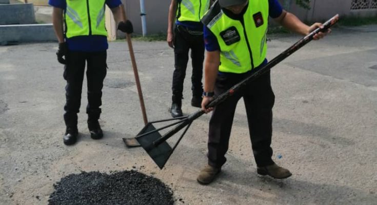 Jalan yang berlubang di sepanjang Masjid Telok Mas, SMK Telok Mas dan SK Telok Mas telah diturap oleh MBMB semalam.